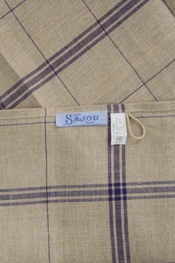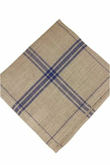 Grand torchon à broder 100 % lin 12 fils au cm coloris naturel avec carreaux bleu marine