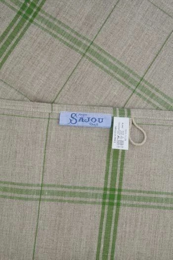 Ce torchon pur lin est pourvu d’une petite bride d’accrochage et comporte une étiquette de la Maison Sajou.
