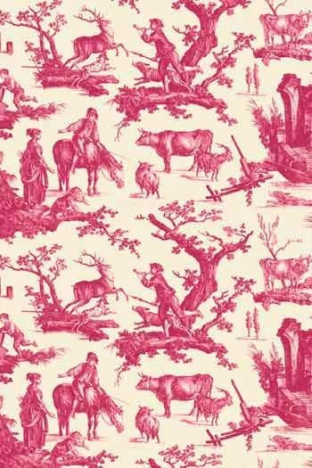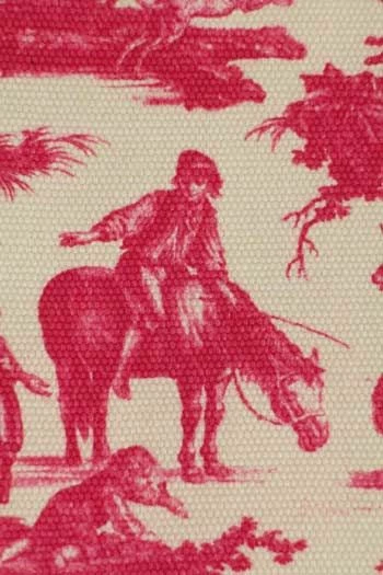 Grand torchon dans notre motif toile de Jouy rose Les Plaisirs de la Campagne.