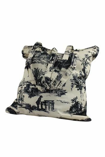 Tote bag 100 % coton toile Jouy Travaux de la Manufacture noire
